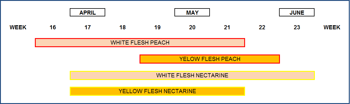 During the first cultivating years, the plants produce little or nothing; full production is reached after the fourth year for the peach / nectarine and after the fifth or sixth year for plums and apricots.