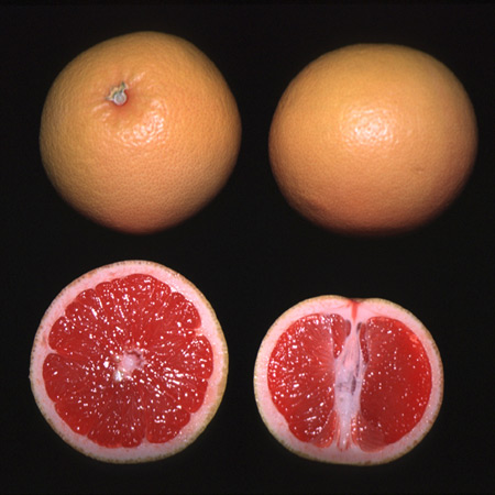 Star RubyEs de tipo rojo. Fue obtenida mediante la irradiación de una semilla de la variedad Hudson Foster en Texas en 1959, lo que presenta la pulpa de coloración más intensa y la coloración externa es superior a la de las variedades más recientes.